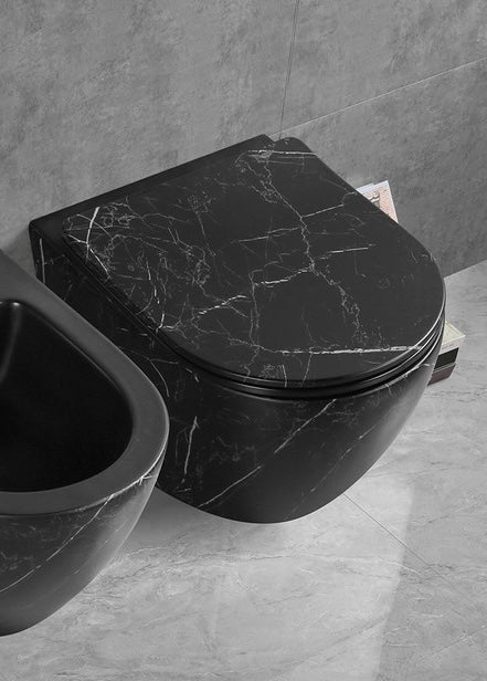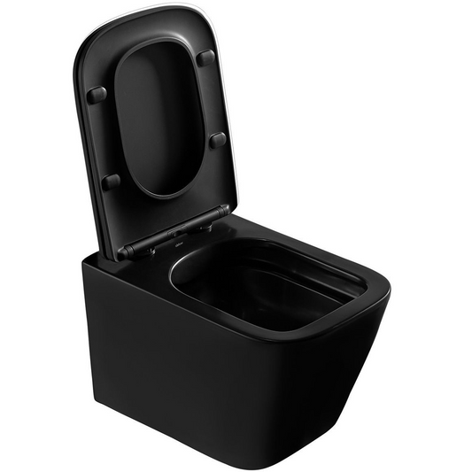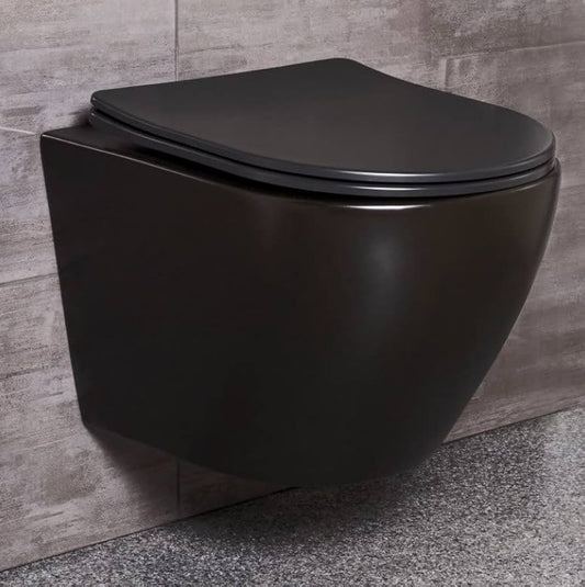 אסלה תלויה קצרה שחור מט דגם TOKYO כולל מושב דק UF נשלף טריקה שקטה