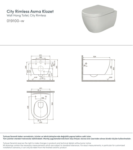 אסלה תלויה TURKUAZ רימלס עגולה לבן מבריק דגם CITY