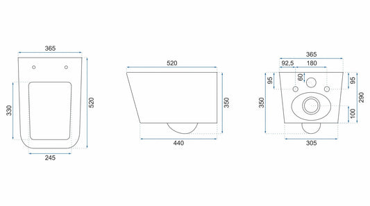 אסלה תלויה עגולה לבן מבריק שטיפה היקיפית