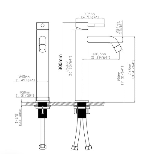 ברז פרח גבוה עדין ידית צד שחור מט דגם IMPERIAL