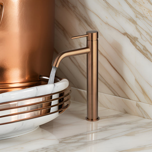 ברז פרח יוקרתי גבוה לכיור מונח רוז גולד מוברש CLASS ציפוי PVD