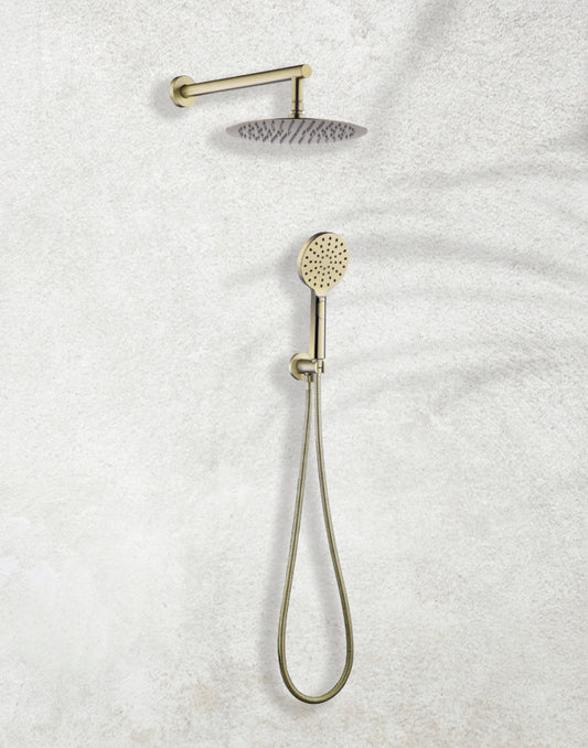 סט מקלחת עגול קומפלט שני אינטרפוצים זהב מוברש ציפוי PVD