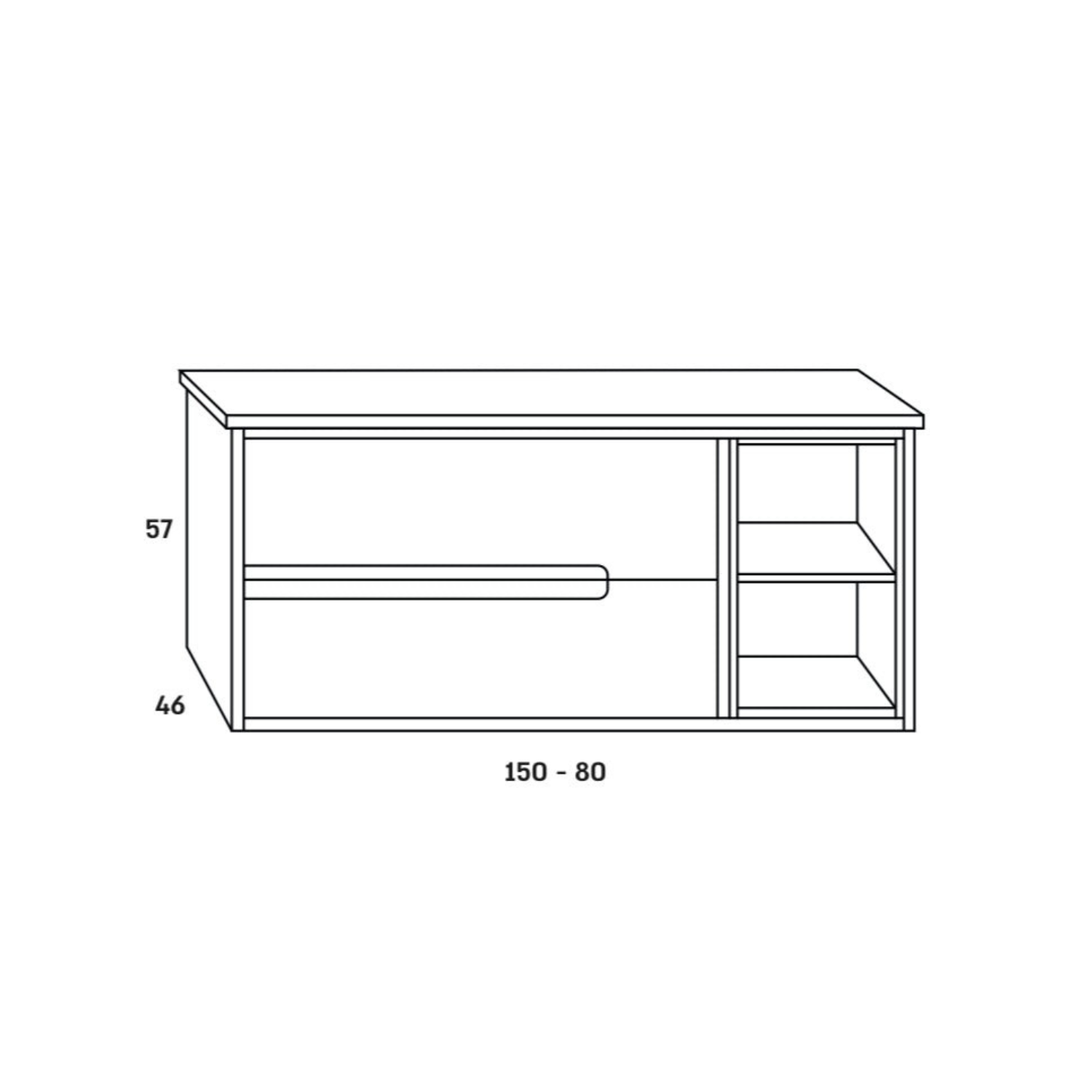 | 2 מגירות ו 2 מדפי צד פתוחים | 150/46 ס"מ |