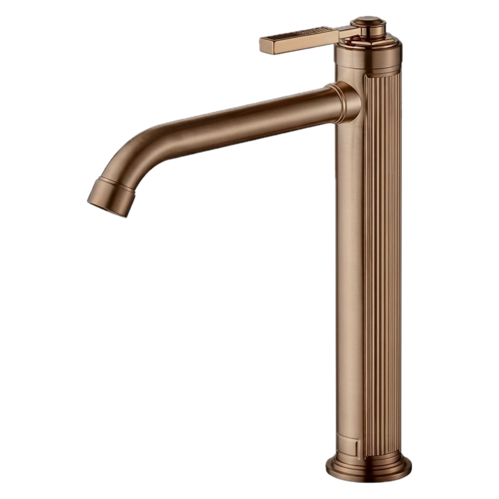 ברז פרח גבוה לכיור מונח רוז גולד מוברש מחורץ דגם PREAL ציפוי PVD