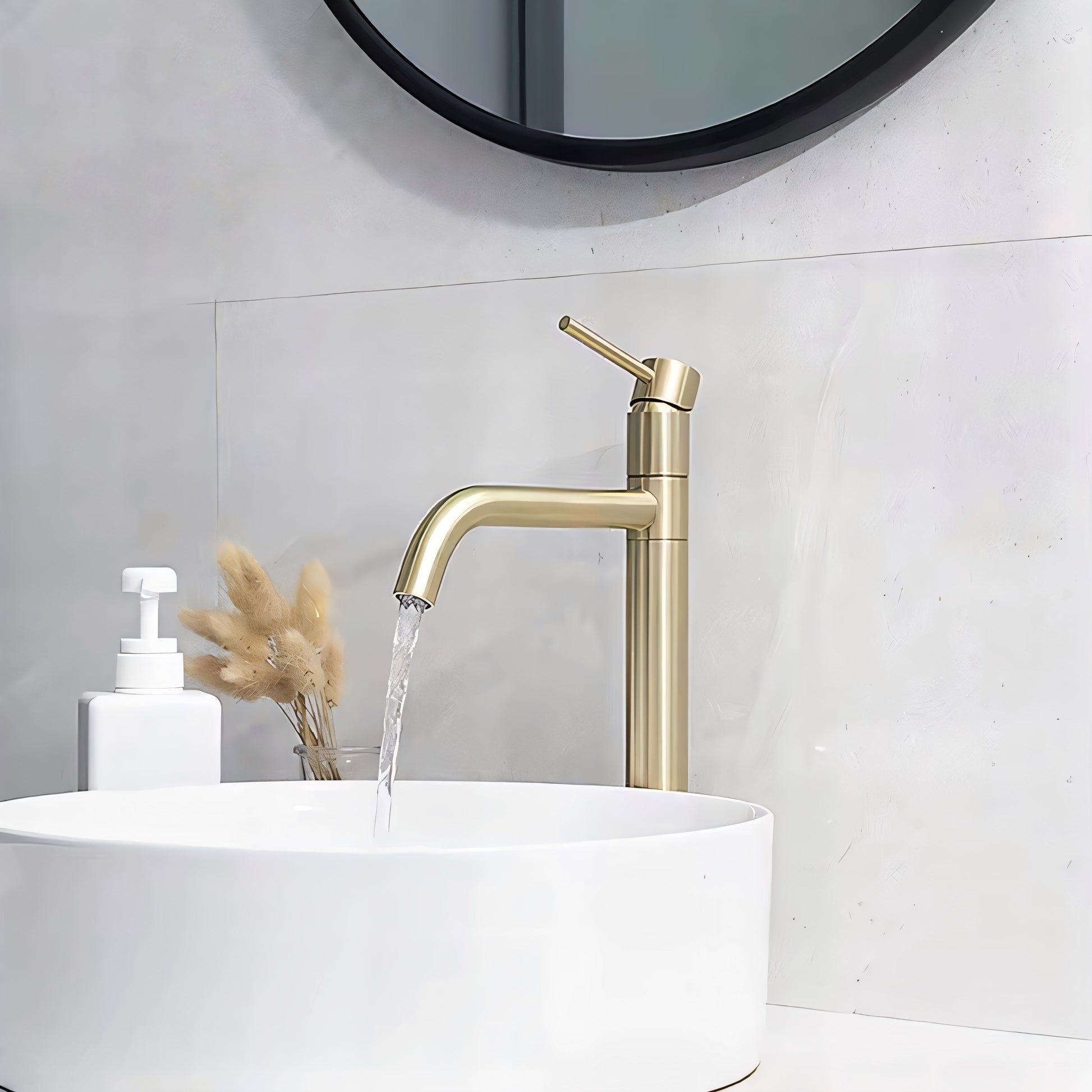 ברז אמבטיה גבוה, ידית סטיק מעל הברז, זהב מוברש