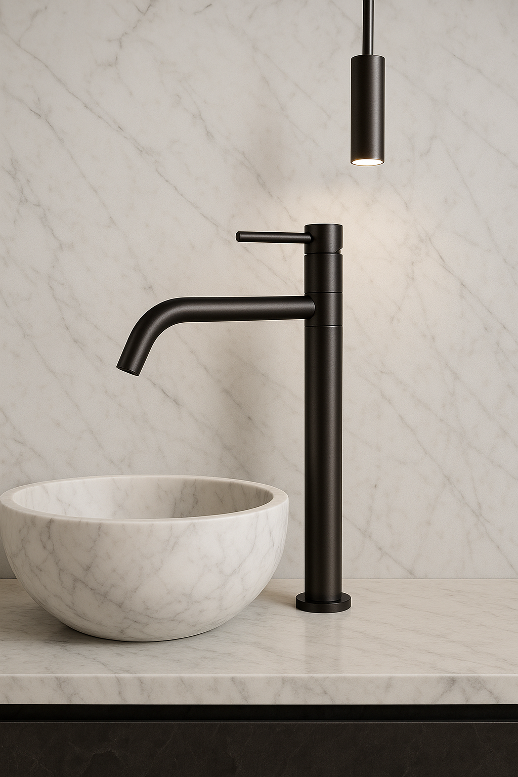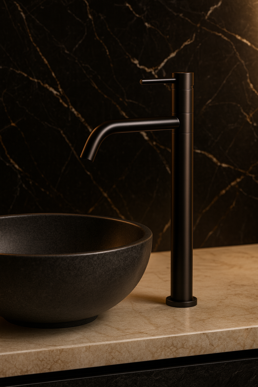 ברז פרח יוקרתי גבוה לכיור מונח שחור מט דגם CLASS מבית HOCHWASSER ציפוי PVD