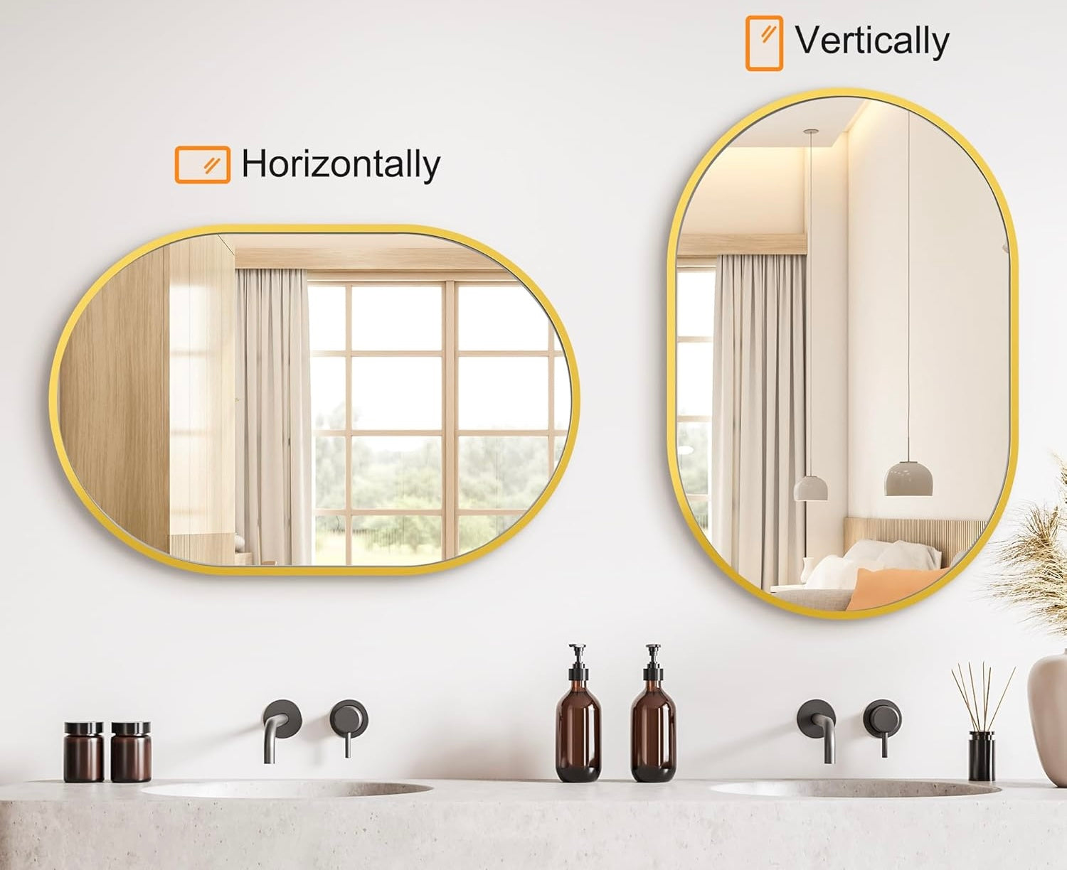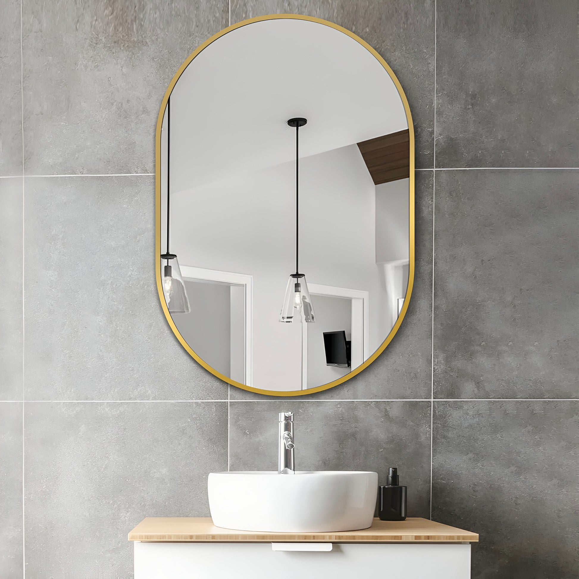 מראה אובלית יוקרתית מסגרת אלומניום צבע זהב מוברש