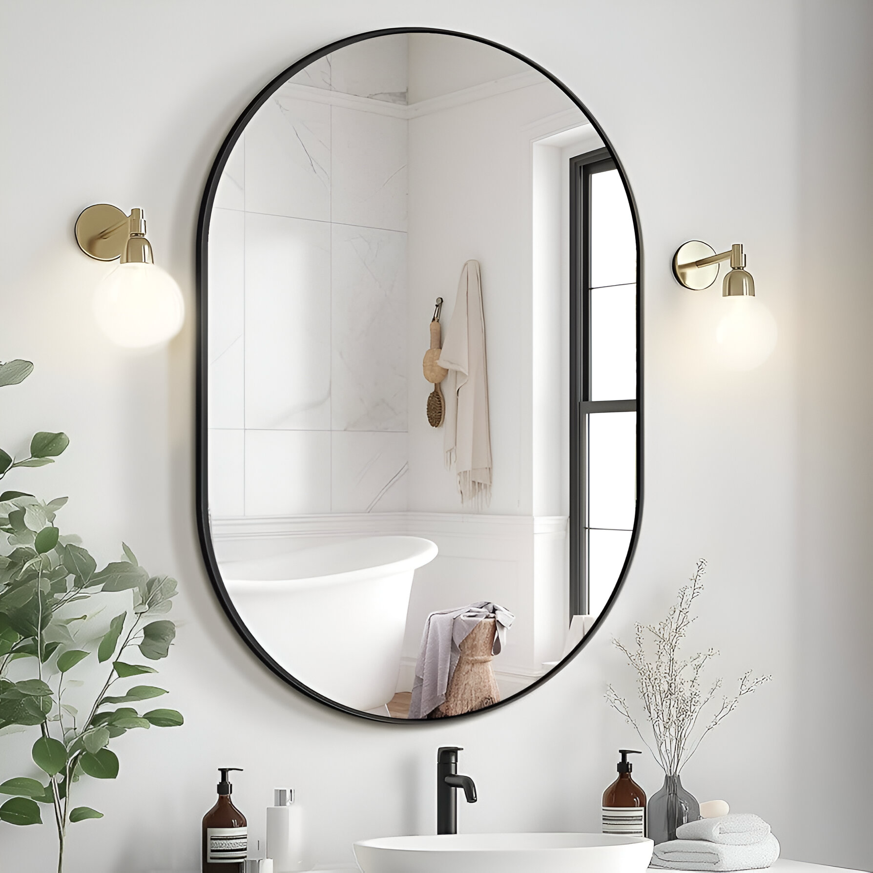 מראה אובלית דקה עם מסגרת בגוון שחור מט